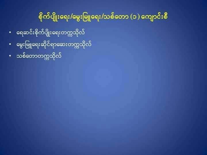 စိုက်ပျိုးရေး/မွေးမြူရေး/သစ်တော – ၃