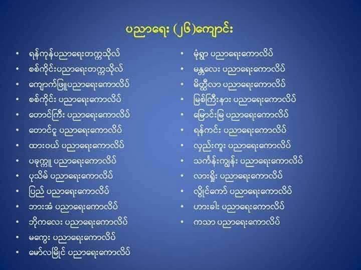 တက္ကသိုလ်ဝင်တန်း ပြီးမြောက်အောင်မြင်သည့်အခါ ကျောင်းသား/ကျောင်းသူများအနေဖြင့် ဝင်ခွင့်လျှောက်ထားနိုင်သည့် အစိုးရ တက္ကသိုလ်နှင့် ကောလိပ် (၂၂၃) ကျောင်းကို စုစည်းဖော်ပြအပ်ပါသည်